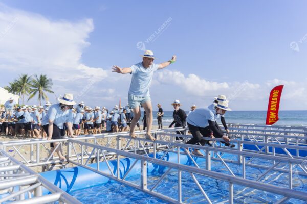 Đi Cầu Thăng Bằng: Tiếp theo, hãy kiểm tra khả năng cân bằng và tập trung của bạn với thử thách đi cầu thăng bằng. Mỗi bước đi không chỉ đòi hỏi sự khéo léo mà còn yêu cầu sự tin tưởng và hỗ trợ lẫn nhau giữa các thành viên trong đội.